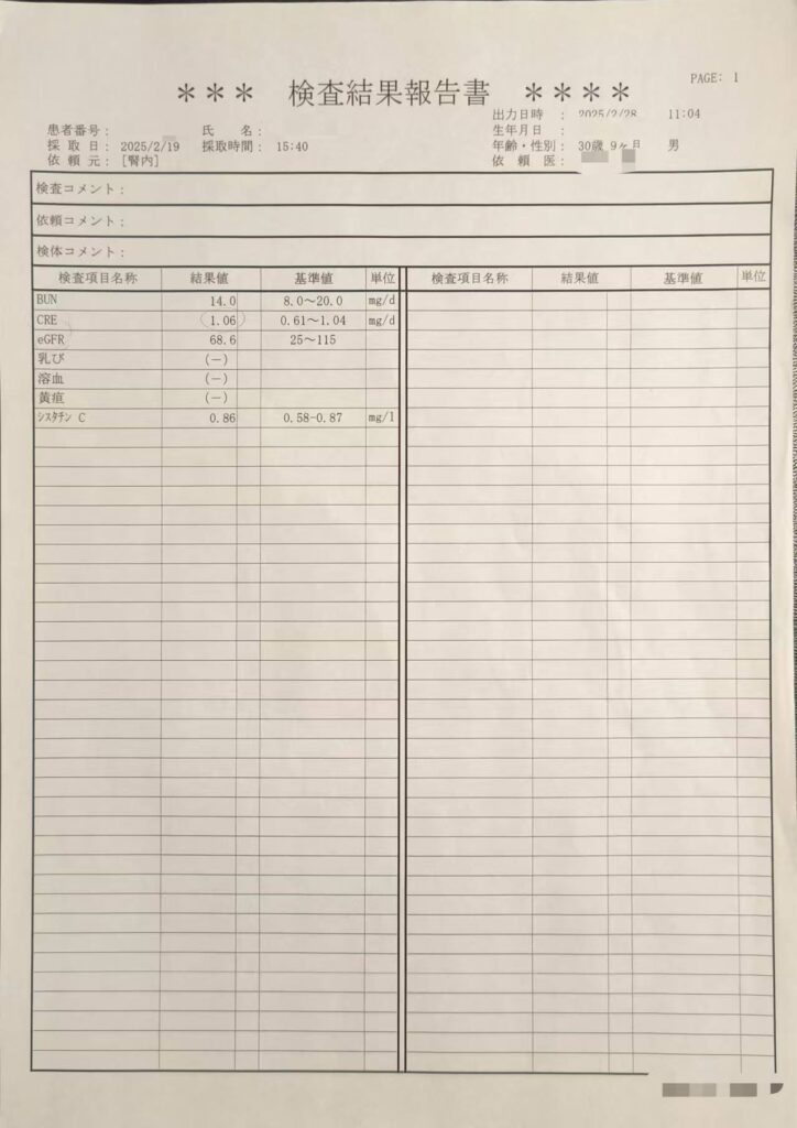 医師からは「現時点ではほぼ横ばい。積極的に薬を服用する段階ではない、引き続き経過観察でよい」との言葉をもらった。 今の生活習慣を続けながら、これ以上の悪化を食い止める。18歳からの高血圧と脂質異常症が腎臓に与えてきた負担を考えれば、私は「普通の人」以上にケアし続ける宿命にあるのだと再確認した。
